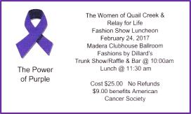 - February 24: 10:00 a.m. – Power of Purple: Fashion Show & Luncheon