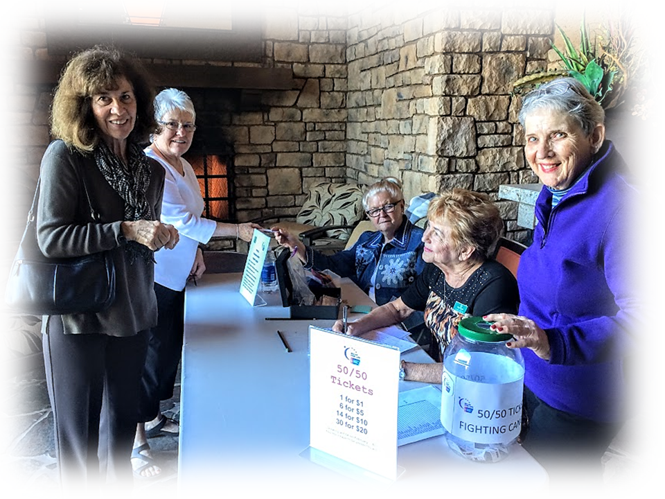 Nancy, Carol, and Ginny sold fashion show tickets and 50/50 raffle tickets on January 8 outside the Grill.