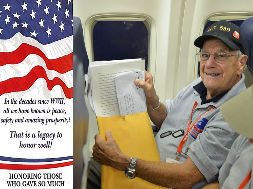 Honor Flight #23 out of Tucson will be honoring 66 WWII, Korean and Vietnam Veterans with an all-expense paid trip to Washington DC to see the WWII and Korean Memorial and the Vietnam Wall built in their honor. The focus is about thanking our veterans for the service and sacrifice they made so many years ago for the freedoms we enjoy today. On the return flight they all have a surprise of mail call – the same kind that kept their spirits alive during the war. These notes and letters are a valuable and tangible keepsake of their trip.