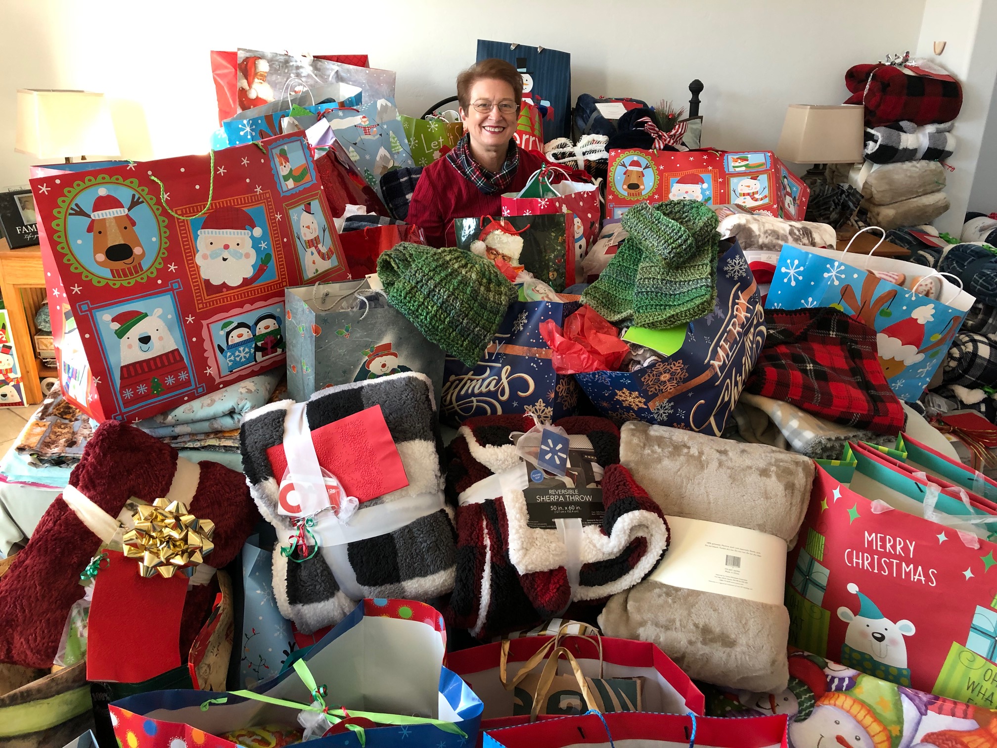9. Dignitaries from YOTO will help us celebrate the Blanket and Gift Card drive. (Can’t find Sue Ann, YOTO Chair, in the photo? Click/tap to enlarge.) Photo credit: Walt Obremski