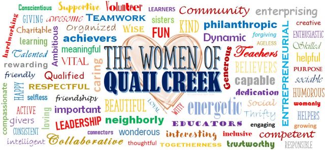 During these difficult days, our members have celebrated the birth of new family, the accomplishments of graduates, and the loss of beloved friends and family. All these moments have happened while we are not able to offer congratulatory or consoling hugs. To each of you, know that The Women Of Quail Creek is hugging you virtually and looking forward to the time when we can once again be in each other’s comforting arms.