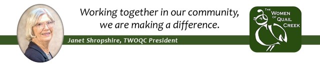 All Quail Creek women residents are invited to join TWOQC. Contact our Membership Director if you have questions. | JOIN TODAY | “Like” & follow us on Facebook.com/twoqc.