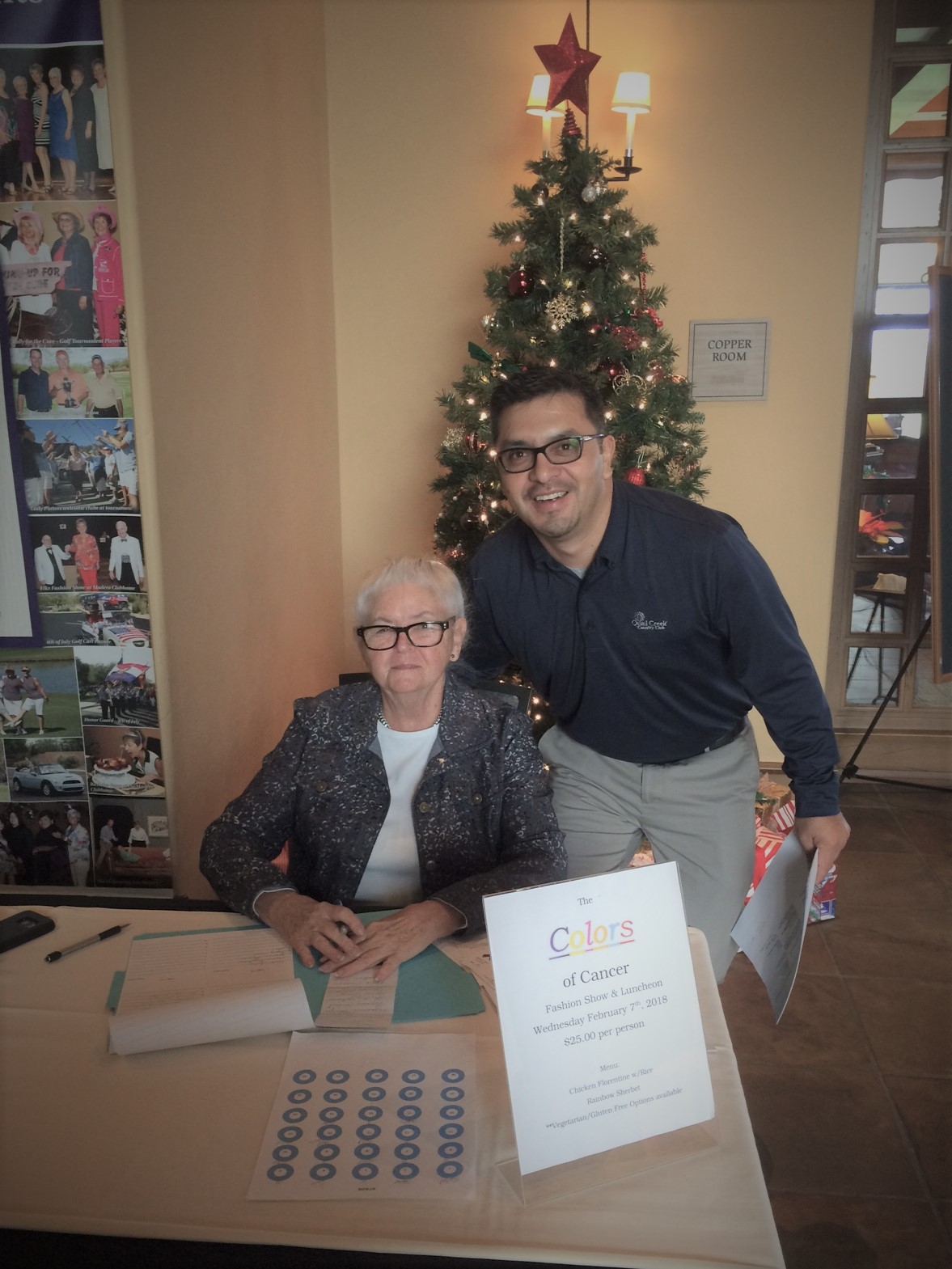 Dec17.2017_Nancy Jacobs sells fashion show tickets. Miguel Venegas considers purchasing a ticket.