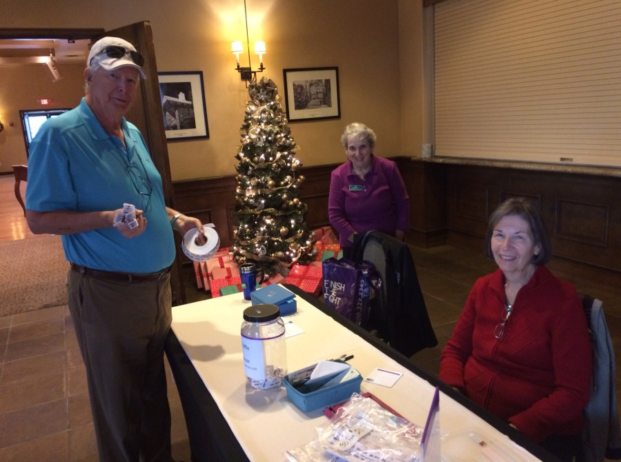 Fashion show raffle ticket sales Dec2017 _ Tom Bradley, Virginia Hutcheson, Linda Bradley