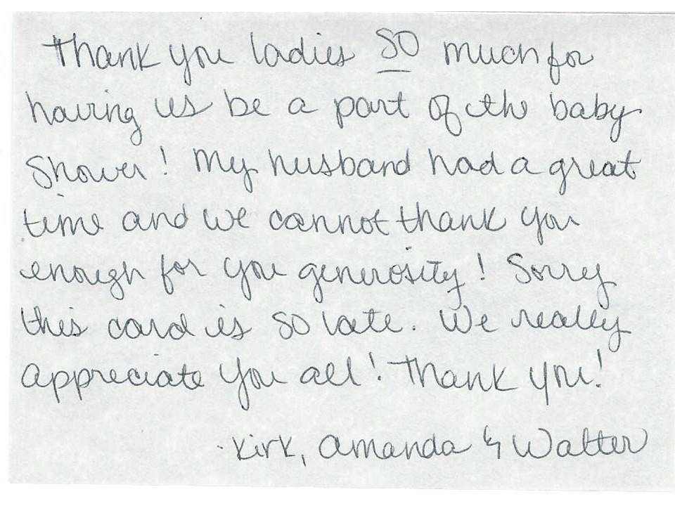 Thank you from Kirk, Amanda, and baby Walter